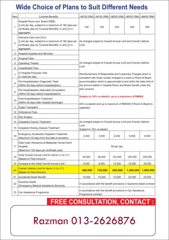 keistimawaan kad kami berbanding dengan TAKAFUL yang lain..
