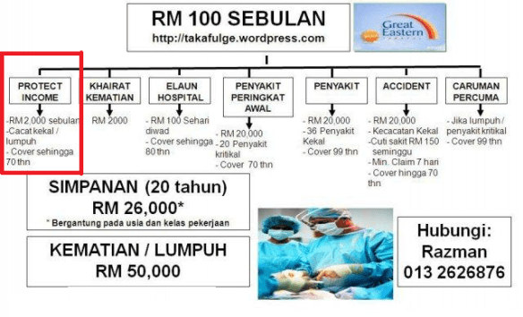 Bayangkan sejenak bagaimana perbelanjaan sara hidup keluarga, perbelanjaan rumah / kereta, perbelanjaan sekolah anak – anak, simpanan persaraan, perbelanjaan perubatan, wang saku kepada ibu bapa – AKAN HILANG SELAMANYA.