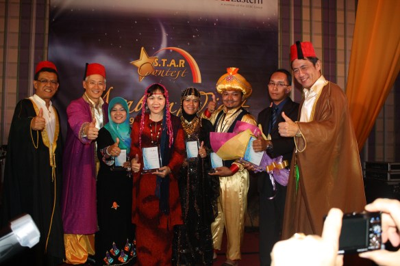 Tanpa di sangka-sangka baju dan topi hasil kerja tangan sendiri memberikan kejayaan pakaian terbaik pada malam Arabian Night.