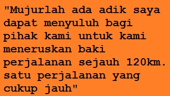 Menurut makenik itu,   kerosakan itu mungkin pada alternator. Kereta itu masih dapat bergerak dengan syarat tanpa menghidupkan lampu. Apa lagi saya pun meminta Hafiz berada didalam kereta untuk saya tolak bagi tujuan menghidupkan enginnya. Alhamdulillah kereta dapat dihidupkan dan tiada gangguan pada prestasi engin. Kereta saya masih boleh bergerak tetapi dengan syarat  boleh menghidupkan lampu. Mujurlah ada adik saya dapat menyuluh bagi pihak kami untuk kami meneruskan baki perjalanan sejauh 120km. satu perjalanan yang cukup jauh.. Alhamdulilah walau tanpa lampu kami selamat sampai di JB pada pukul 10:30 malam.