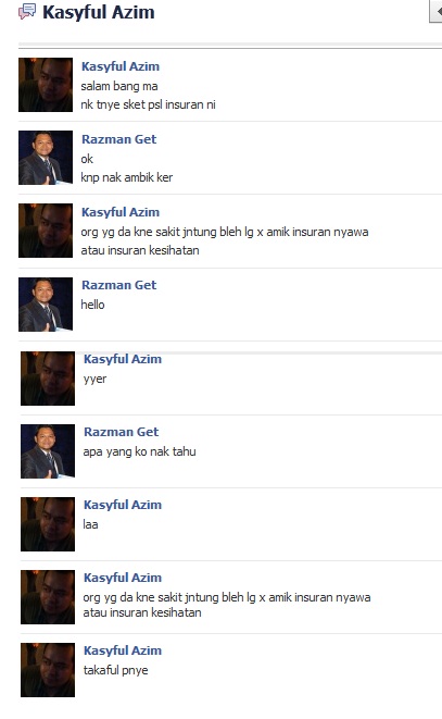Masa tu tak kisah sumbangan berapa pun sanggup dia keluarkan asalkan dia boleh memiliki takaful.. Sayang sekali dah terlambat.. ni contoh dari FB saya pagi tadi contoh orang kita.