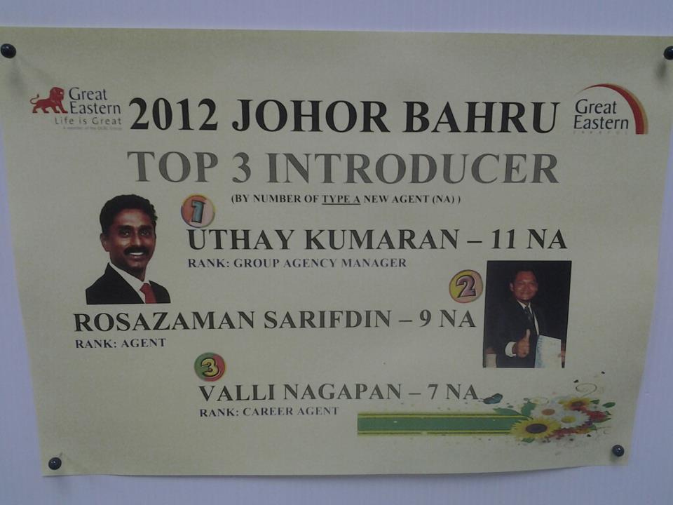2012 dah meninggalkan kita hampir 4 bulan… Hari ini baru perasan gambar yang tergantung di dinding bilik traning Great Eastern Branch Johor Bharu..