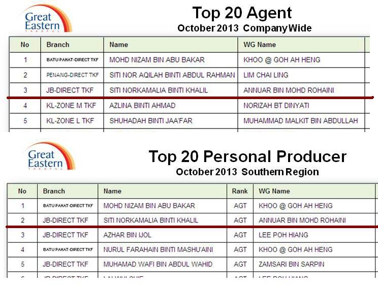 Alhamdulillah pada bulan lepas  rakan niaga di bawah seliaan saya Masrinie Salim mendapat tempat pertama kini giliran Siti Norkamalia Khalil pula menunjukkan prestasi yang memberangsangkan..