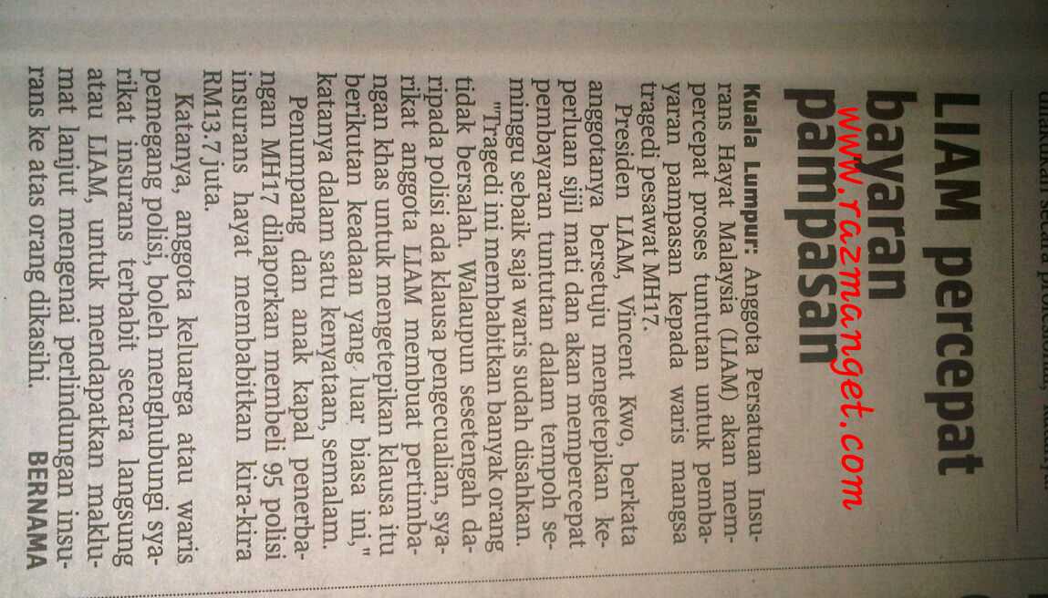 Cuma apa yang saya lihat disini boleh dikatakan setiap penumpang dan krew memiliki sekurang kurangnya 2 polisi insuran.. dengan 95 polisi keseluluruhan dengan jumlah tuntutan sebanyak RM13.7 juta.