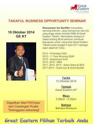 Alhamdulillah bersyukur kehadrat ilahi.  Kali ini di beri kepercayaan oleh pihak syarikat untuk berkongsi kisah perjalanan saya di Great Eastern Takaful di Kuala terengganu.