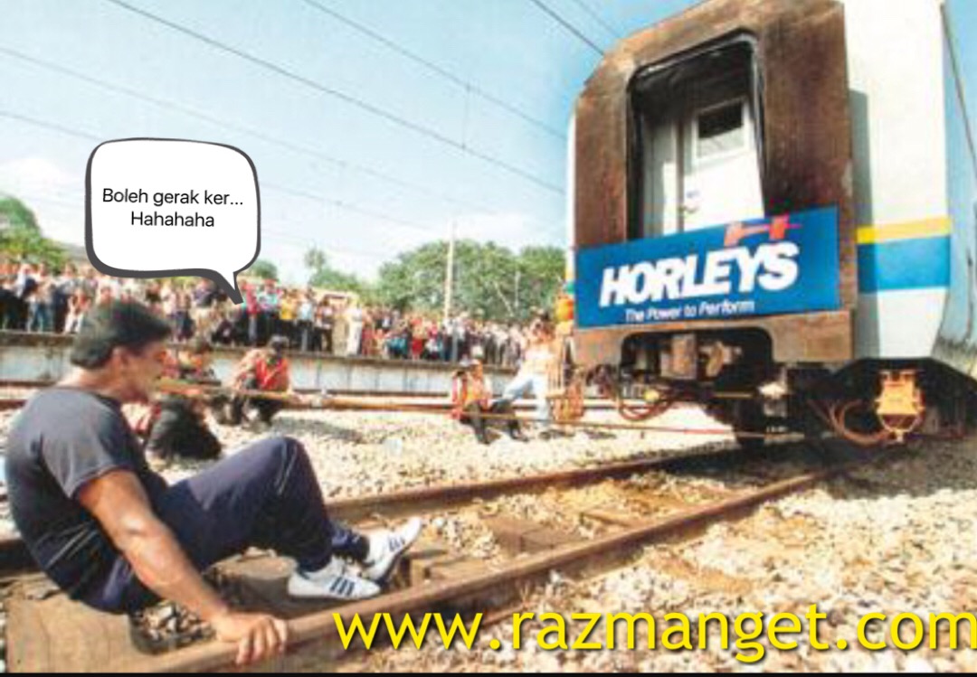 Orang kampung bersorak Ejam cepat ketepi MUSTAHIL kereta api ini boleh berhenti……