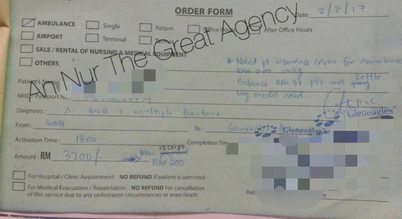saya telah terlibat dengan kemalangan Motosikal pada 2/4/2017 dan mengakibatkan tangan kiri saya patah. akibat dari kemalangan itu saya telah di berikan rawatan di hospital swasta dengan kos rawatan berjumlah hampir RM30,000. Selain dari itu juga saya di berikan cuti sakit selama 2 bulan 3 mingu (84 hari)