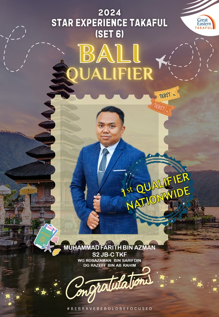 Alhamdulillah segala puji bagi Allah kerana dengan izinNya Agensi kami telah mencapai 1MDA terpantas di Great Eastern Takaful Berhad bagi tahun 2024.