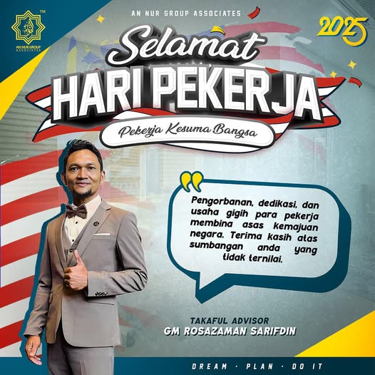 SELAMAT HARI PEKERJA Posted on May 1, 2025 by Takafulge Salam semua warga pekerja, “Setiap keringat yang jatuh adalah bukti perjuangan. Selamat Hari Pekerja untuk semua yang terus berjuang tanpa lelah.” Share this: Click to share on Facebook (Opens in new window) Facebook Click to share on X (Opens in new window) X Like Loading... Related