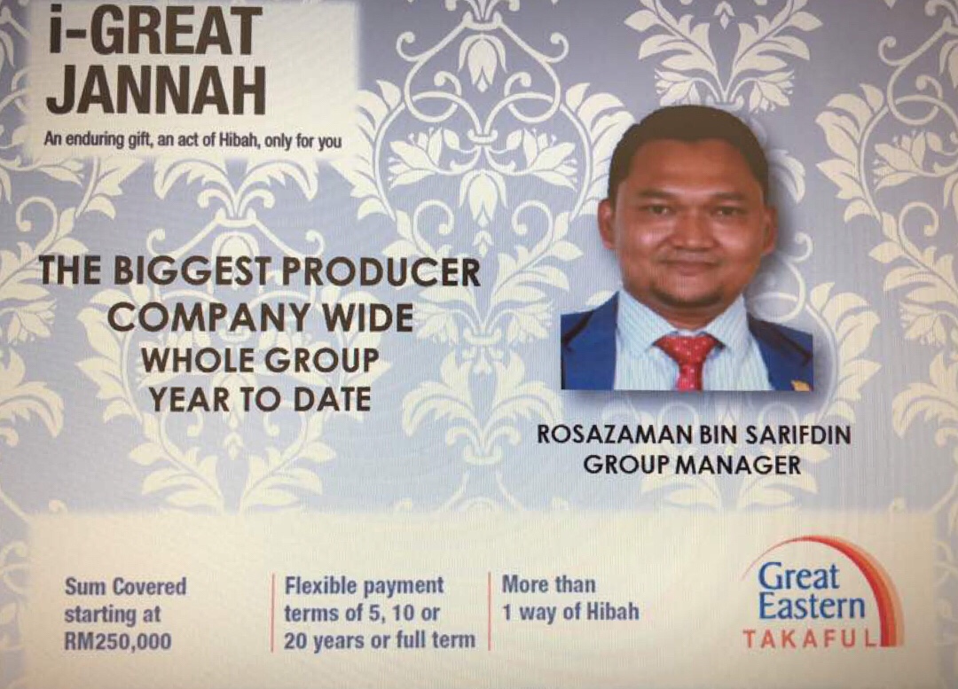 Besar harapan beliau, mengharapkan si suami ada mengambil plan bersama kami di Great Eastern Takaful Berhad. Berat hati saya ingin memaklumkan kepadanya. Setelah membuat semakan, si suaminya tiada sebarang sijil di Great Eastern Takaful Berhad.