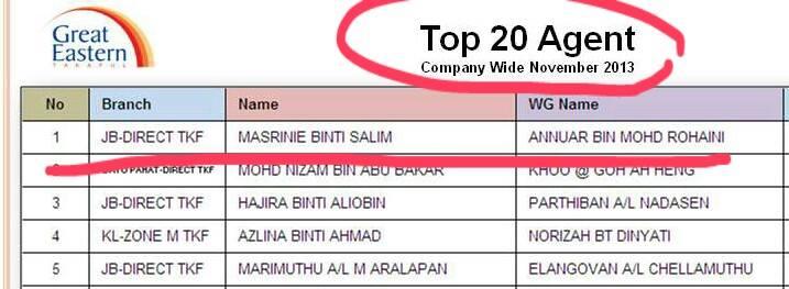 Dengan Ini tiga bulan berturut daripada kumpulan An-Nur The Great Agency memcipta nama sebagai top agent di dalam Great Eastern Takaful.